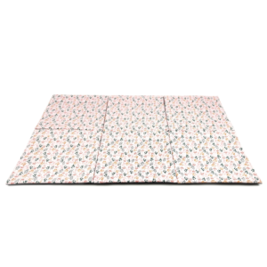 Jestem bardzo zadowolona, ponieważ jak już wcześniej napisałam, mata przeżyła wiele – wylany żurek, rozgniecioną borówkę, ziemię z ogródka i nie wiem sama, co jeszcze. Po pierwszym praniu bez odplamiania wszystko ładnie zeszło. Bardzo łatwo się ściąga materiał z pianek, łatwo się go prasuje i z powrotem składa całą matę.